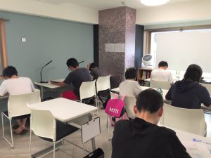 学校の夏休みの宿題を進める子、英単語の練習をしている子、苦手教科の教科書を読みなおしている子など、取り組んでいる内容は様々ですが、誰一人私語をせず、黙々と勉強に取り組んでいます。