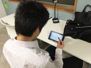 授業以外の演習量を確保するため、今月からタブレットの教材を導入しています。