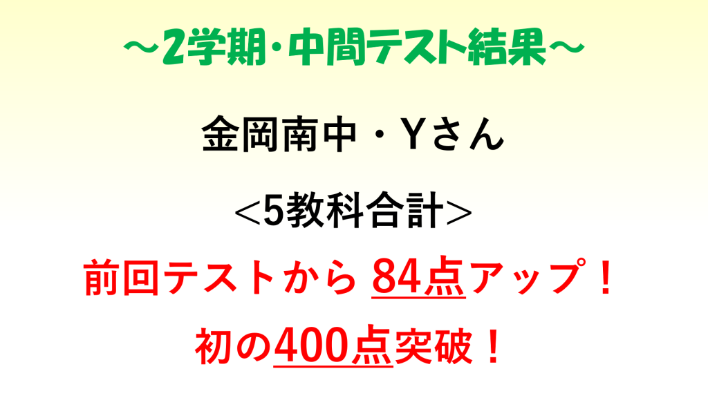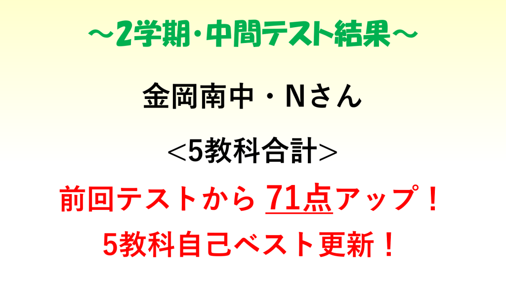前回テストから、5教科で71点アップ!自己ベスト更新!