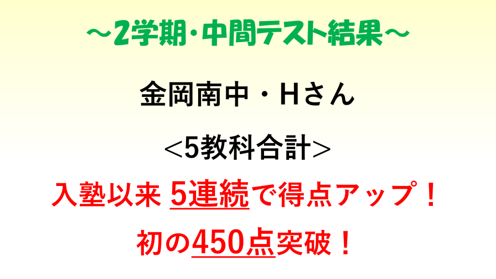 入塾以来、5連続で得点アップ!5教科で、初の450点突破!