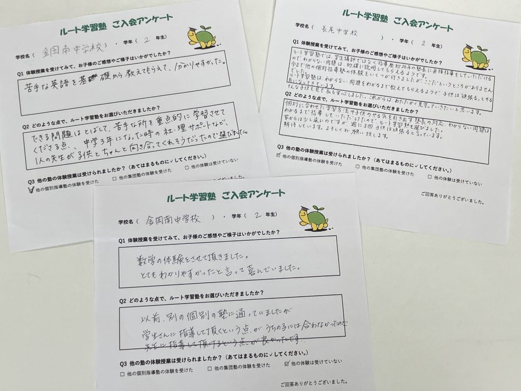 1名は、個別指導塾の体験授業を4か所受けた上での入塾。
