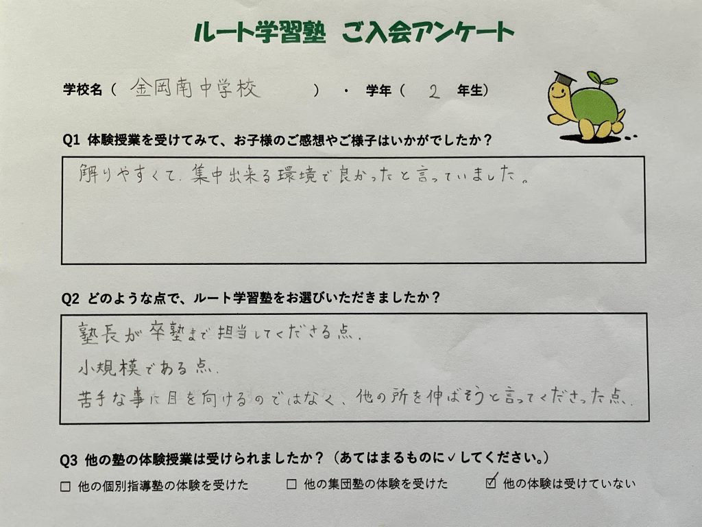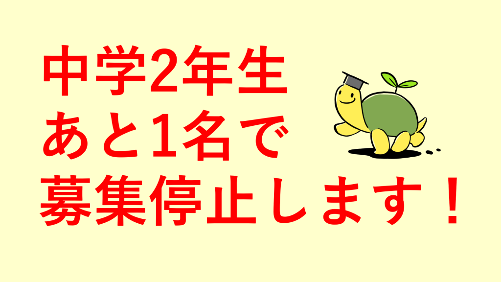 先週新たに1名ご入塾いただいたため、中学2年生の募集枠があと1名となりました。